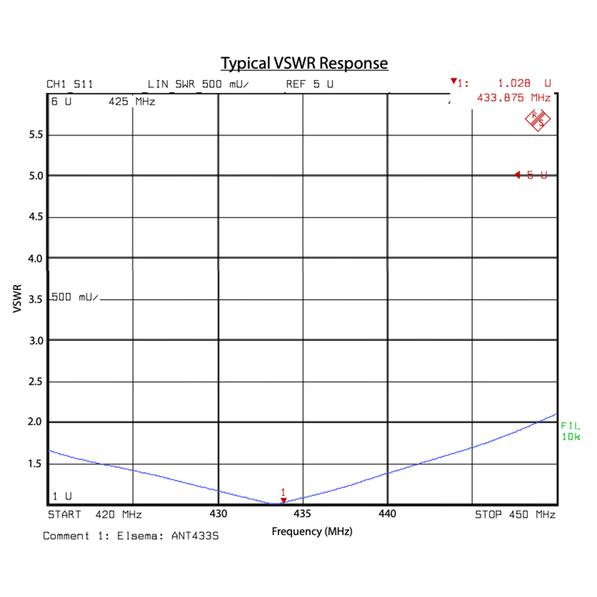 VSWR (Return Loss) | < 1.5 : 1 over 15MHz |